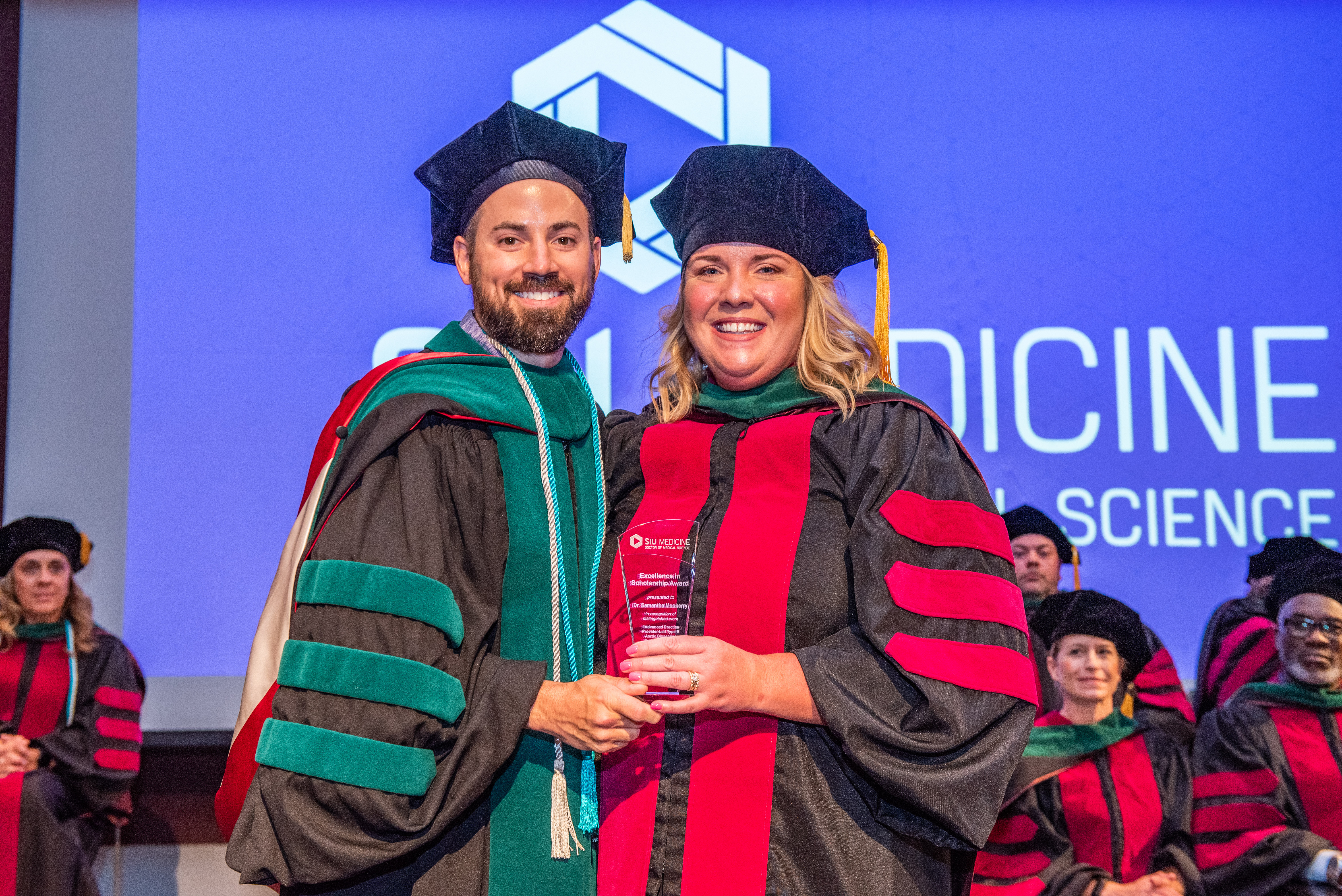 “In recognition of outstanding contribution to student scholarship, professional advancement, and program development, SIU Doctor of Medical Science presents Dr. Rachel Terrill with the 2022 Faculty of the Year Award”